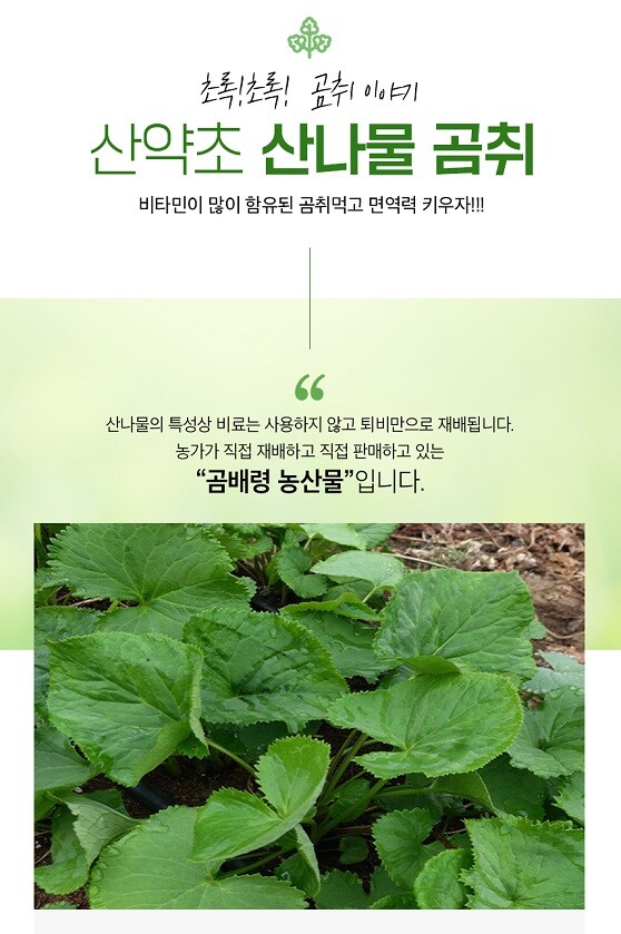 • 인제 곰배령 산지직송 싱싱함을 그대로!! 산약초 곰취나물
